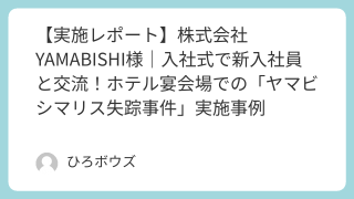 2026年2月、株式会社丸和運輸機関様の入社数年の若手メンバー約80名を対象とした親睦会にて、出張謎解きイベント「会社役員殺人事件」を実施いたしました。