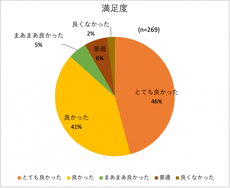 良かった41%、まあまあ良かった5%、とても良かった46%なので、