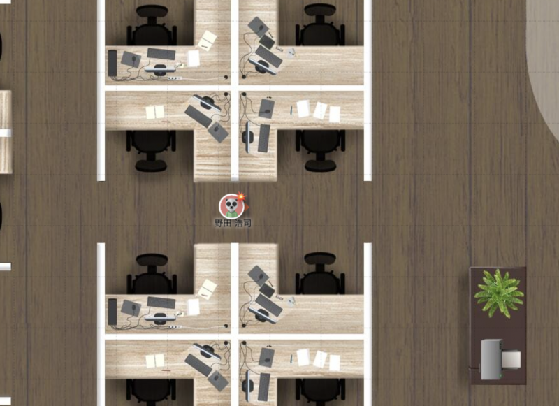 oviceで自社のオフィスのフロアをそのまま再現して毎日オンライン上で出社する、みたいな使い方をしている会社もあるそうです。