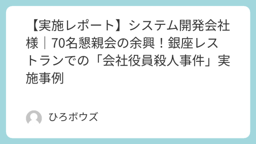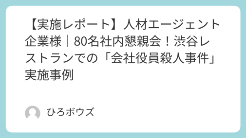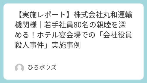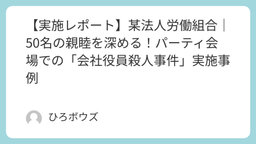 実施レポート 【実施レポート】某法人労働組合|50名の親睦を深める!パーティ会場での「会社役員殺人事件」実施事例